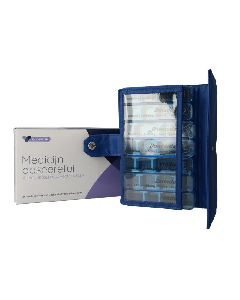 Voor elke dag van de week een aparte doseerdoos met 3 verschuifbare tussen schotjes.