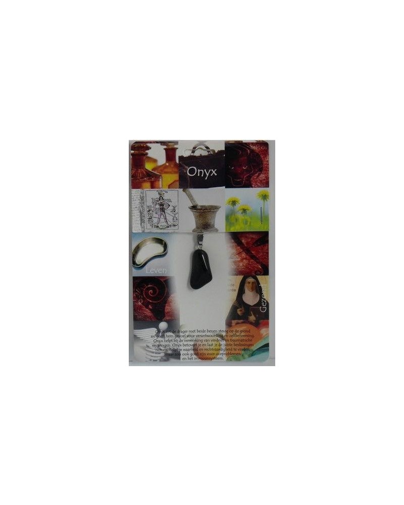 Onyx zet de drager met beide benen stevig op de grond en geeft gevoel voor verantwoording en zelfbeheersing. Onyx helpt bij de verwerking van verdriet en traumatische ervaringen. Onyx betovert je en laat je de juiste beslissingen nemen, helpt je waarheid en rechtvaardigheid te vinden.