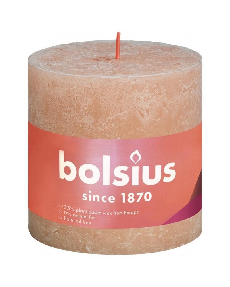 De Bolsius extra dikke stompkaars in de lichtroze kleur Misty Pink is 10cm hoog en brandt wel 62 uur.