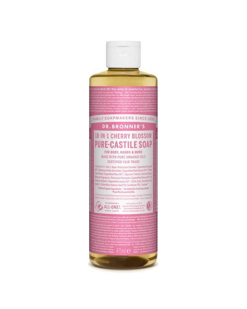 Pure, natuurlijke zeep met de warme geur van biologisch geteelde essentiële oliën. Niets brengt een gevoel van warmte en gezelligheid in de douche als de hemelse amandel zeep Dr. Bronner's. Een geur als vloeibaar marsepein. De zepen bevatten geen synthetische schuimmiddelen, verdikkingsmiddelen of conserveermiddelen en schuimen alleen door de speciale mix van natuurlijke ingrediënten, op basis van 150 jaar ervaring.