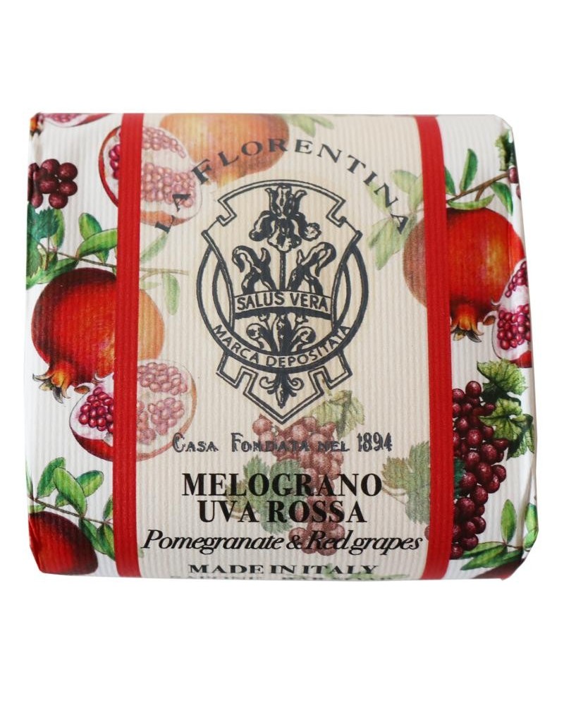 Gemaakt met olijfolie, natuurlijke extracten en granaatappel/rode druifgeur. Een elegante toevoeging aan je badkamer of toilet, fantastisch als cadeau. Breng Toscane in huis.