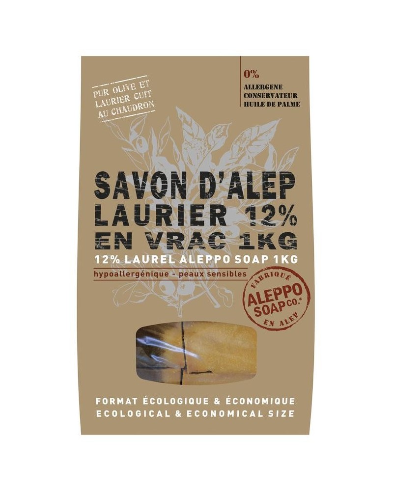 De plantaardige zeep (olijfolie en 12 % laurierbesolie) is natuurlijk en biologisch afbreekbaar.