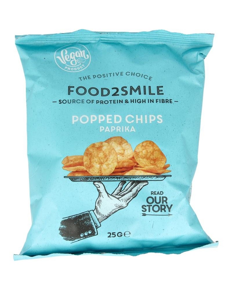 Soja- en aardappelsnacks met paprikasmaak. Glutenvrij, vezelrijk, vegan en zonder toegevoegde suikers.